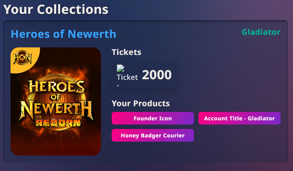 In HoN Reborn, you can view your collection by opening your in-game profile.